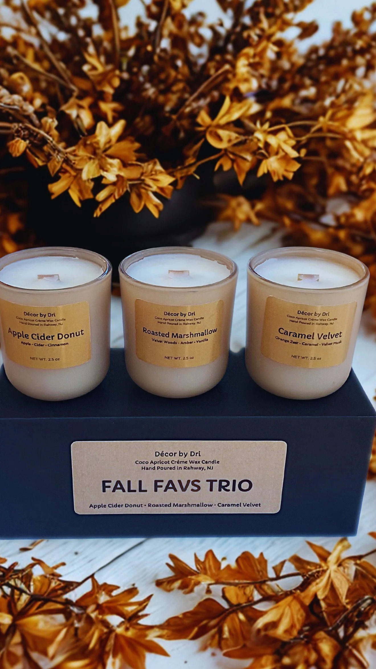 As a perk, when lit, you’ll see the flame through our candle’s beautiful amber violet glass. In addition, its glass vessel can be reused and repurposed as home decor (candy jar, etc.).